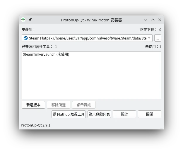 - 透過Flatpak安裝ProtonUp-QT。它會自動偵測Steam收藏庫的目錄,包含原生版與Flatpak版。