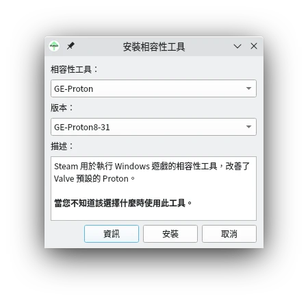 「ProtonTricks」則是用於給Steam遊戲安裝額外的Windows exe套件。