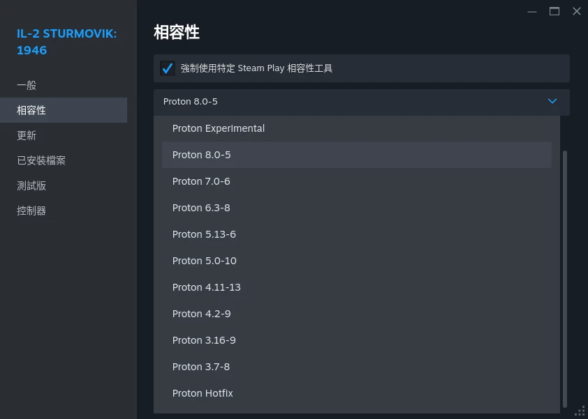 請在Steam收藏庫對要修改的遊戲按下右鍵,啟用Proton,並且啟動過一次遊戲。這樣才會建立Proton Prefix。