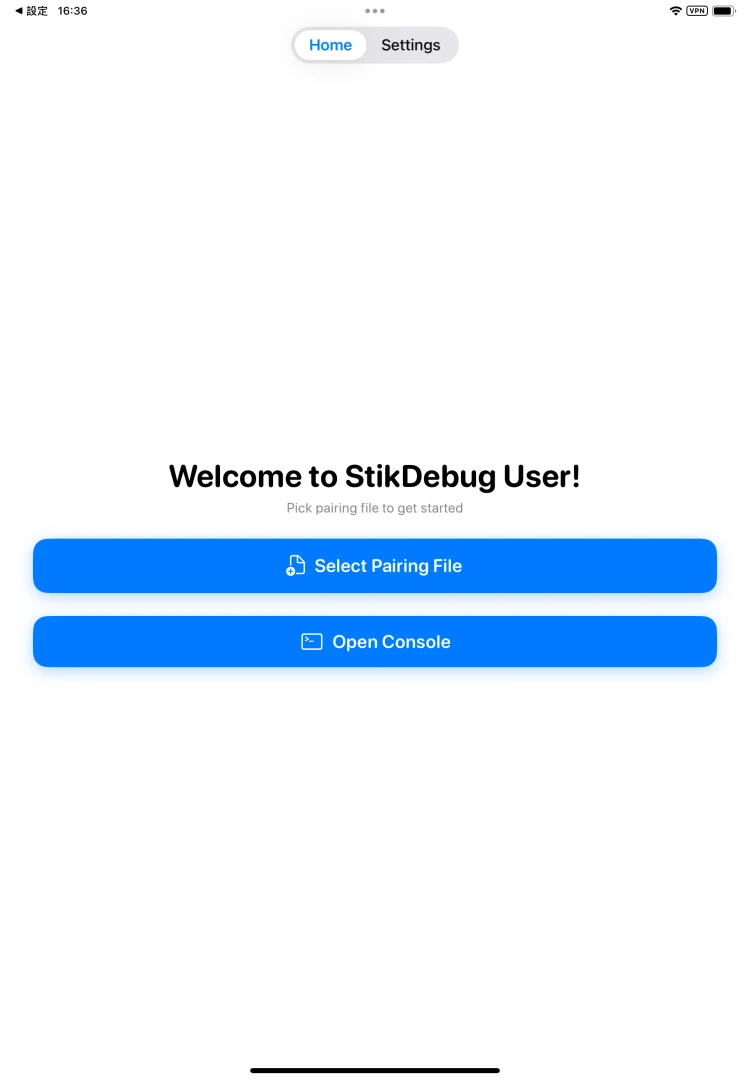 第一次開啟StikDebug的時候,會要求匯入Pairing File,選取剛剛取得的