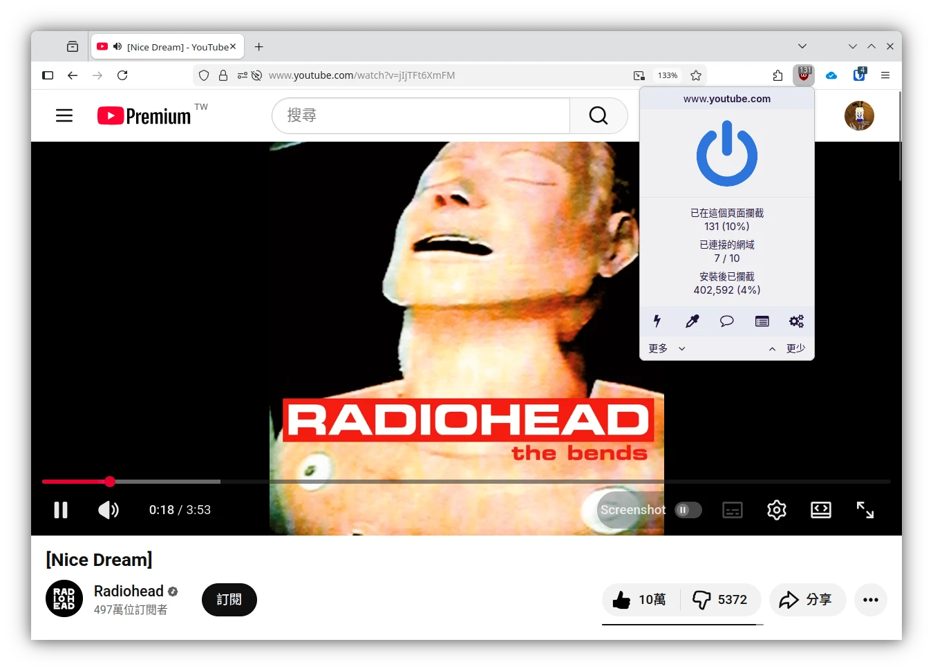 反Google卻脫離不了Youtube,反抗方式便是竭盡所能的擋廣告了。看看uBlock Origin的戰績吧,一個Youtube網頁如果不重新整理,這個攔截廣告數字會越來越多XD
