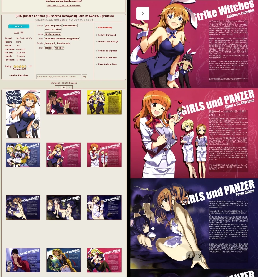 E-hentai手機網頁與Suwayomi E-Hentai頁面比較