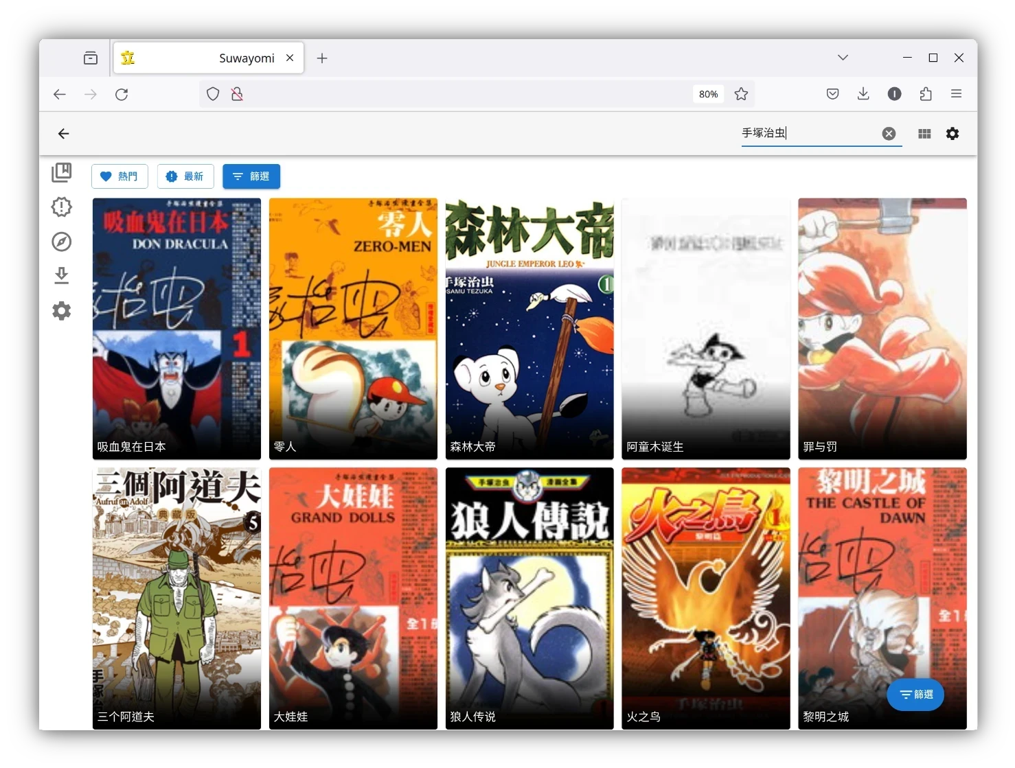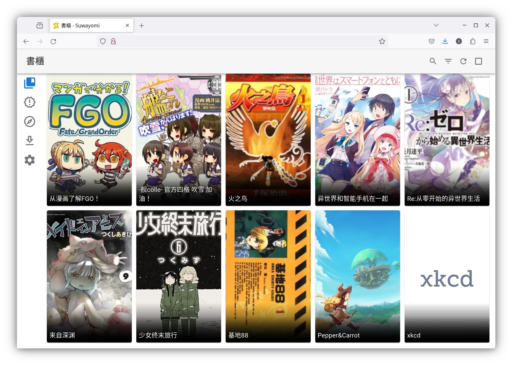 說到這個客戶端APP,要用什麼APP存取Suwayomi的資源呢?最簡單的方式就是利用Suwayomi提供的網頁界面,用瀏覽器就能看了!Suwayomi版面會自動根據螢幕大小變化,就好像在網頁裡使用Mihon一樣。