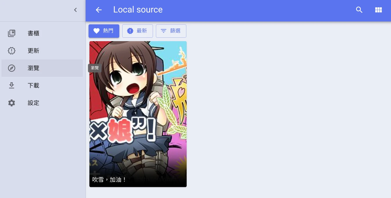 之後便能在Suwayomi的瀏覽 → 本機來源看到漫畫了。
