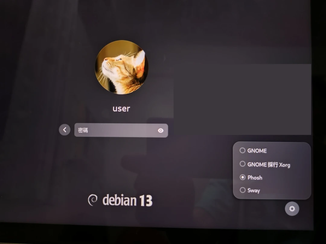 fi重開機,在GDM的登入畫面輸入密碼,右下角可以看到登入GNOME或Phosh的按鈕。