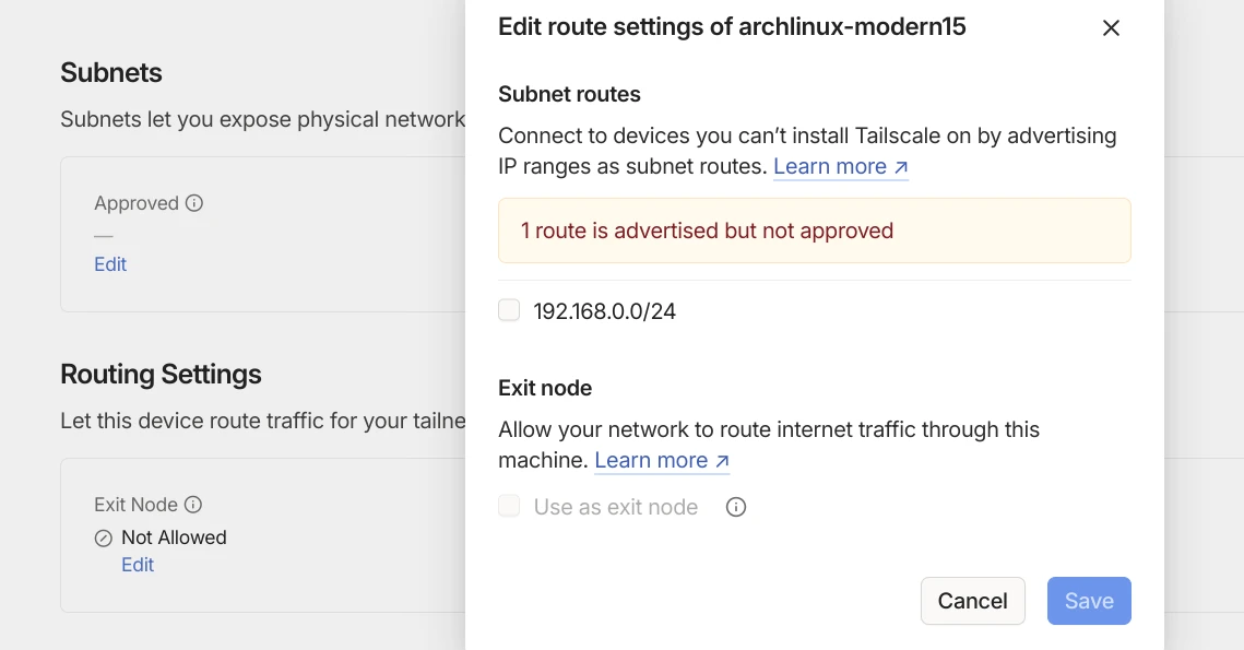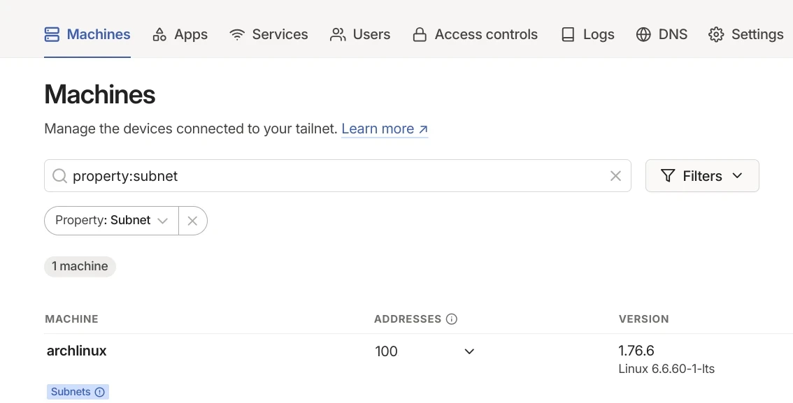 開啟Tailscale網頁後台,點進去Subnet的機器設定