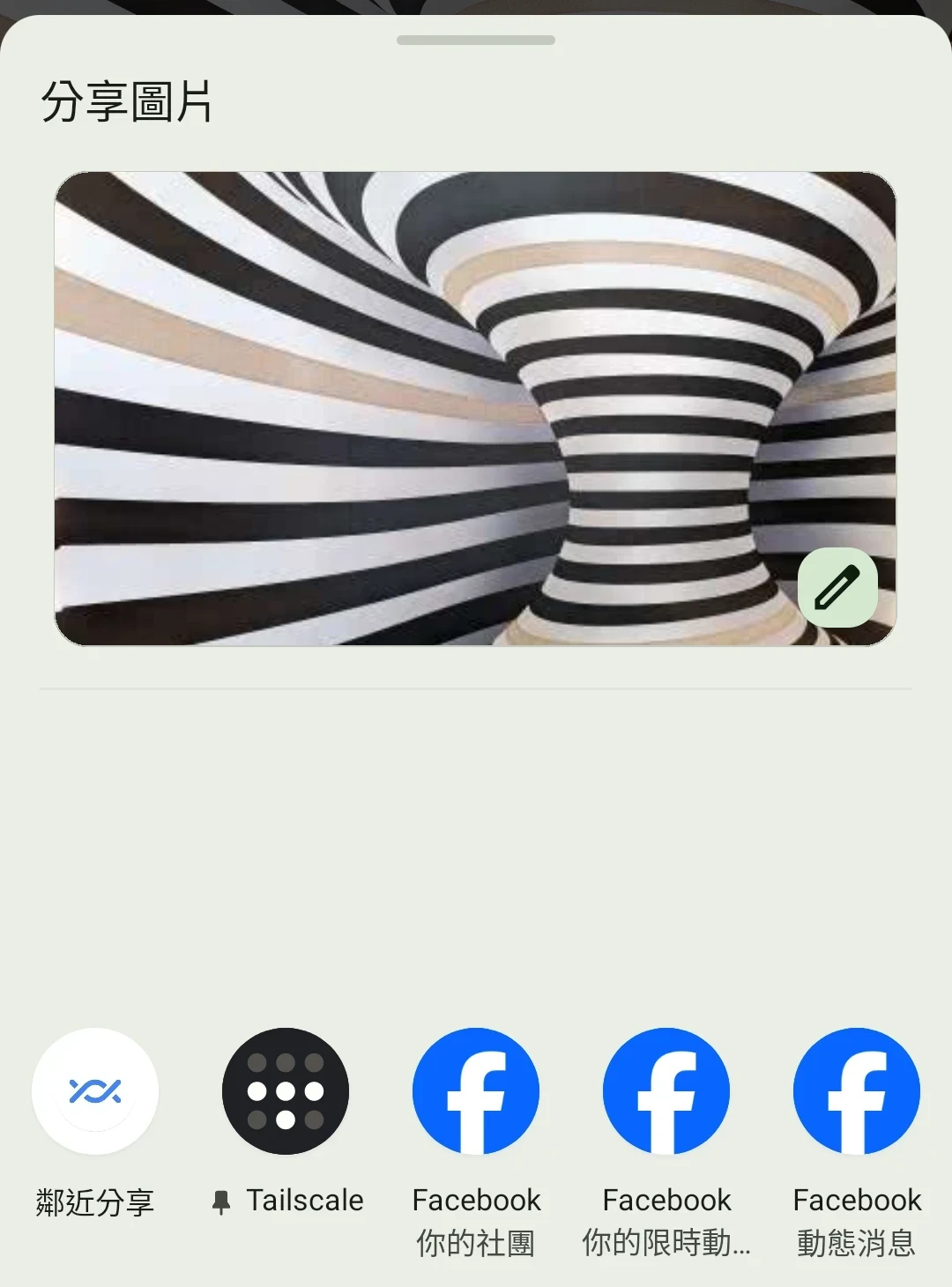 8.手機的傳檔方式更為隱晦,你得用檔案管理器或者相簿APP選取檔案,再透過「分享」選單,選取使用TailScale傳送。