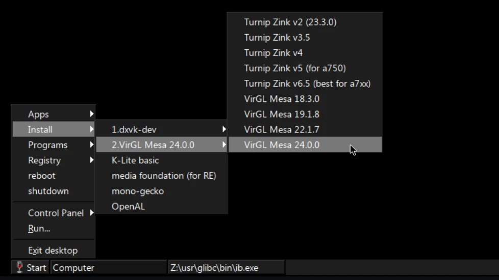 圖形驅動程式部份,如果你是高通處理器就選最新版Turnip,非高通處理器的請裝VirGL Mesa。