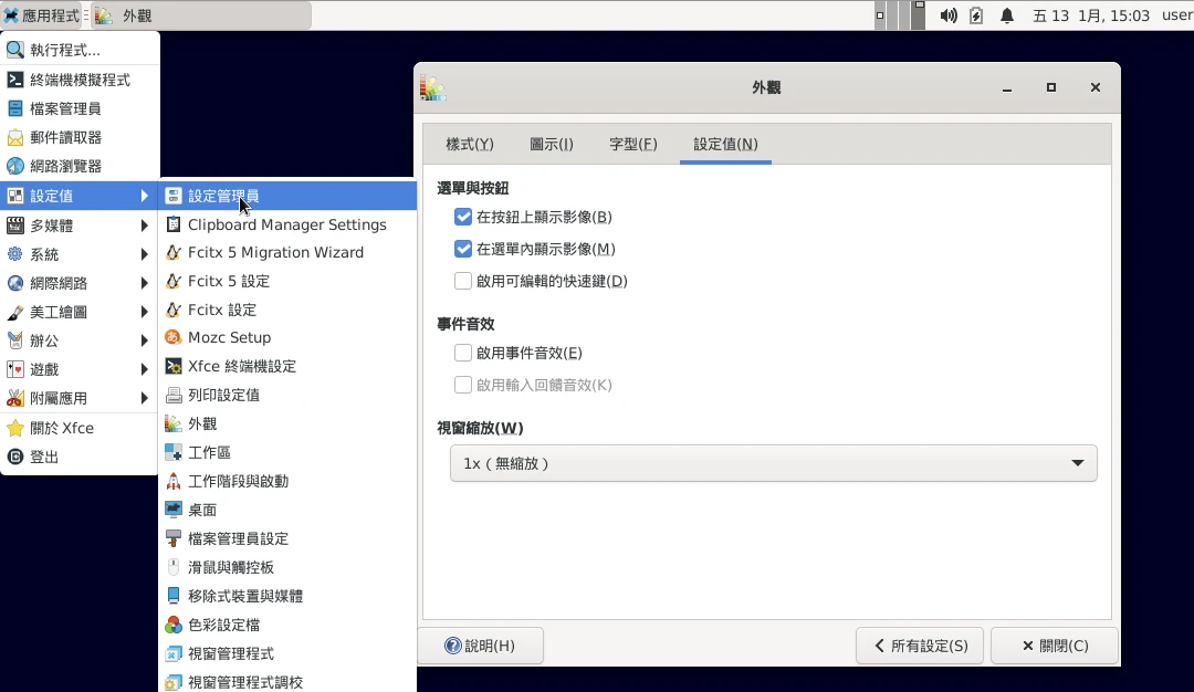 - 依序啟動PulseAudio、Fcitx5、桌面環境XFCE4