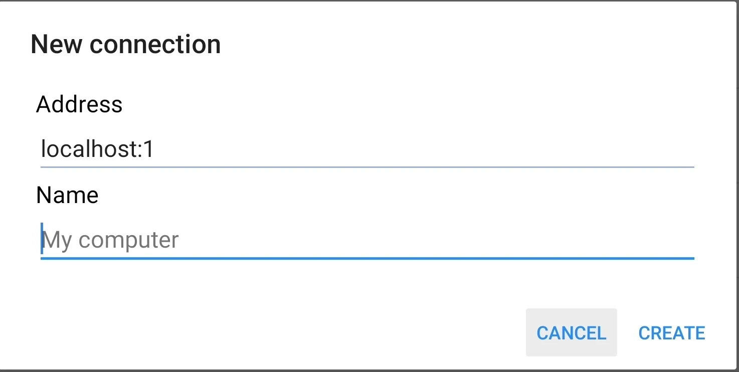localhost:1連線到模擬器畫面。