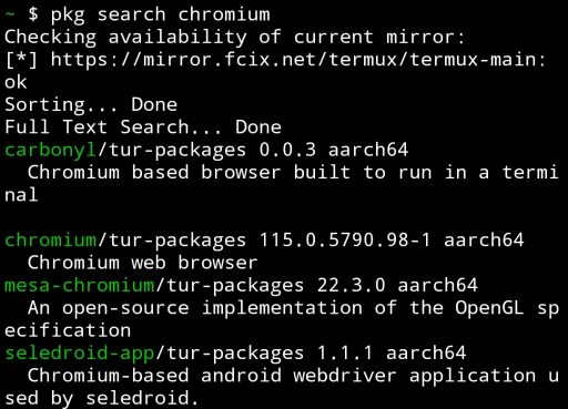 例如,TUR Repo有Termux主套件庫尚未收錄的Chromium瀏覽器,還有純文字版carbonyl: