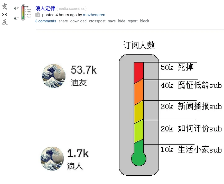 這是Scored上一張浪人王朝覆滅定律的圖片,看來r/CLTV處於「魔怔期」就覆滅了。乾脆回百度貼吧老家重開新家好了。