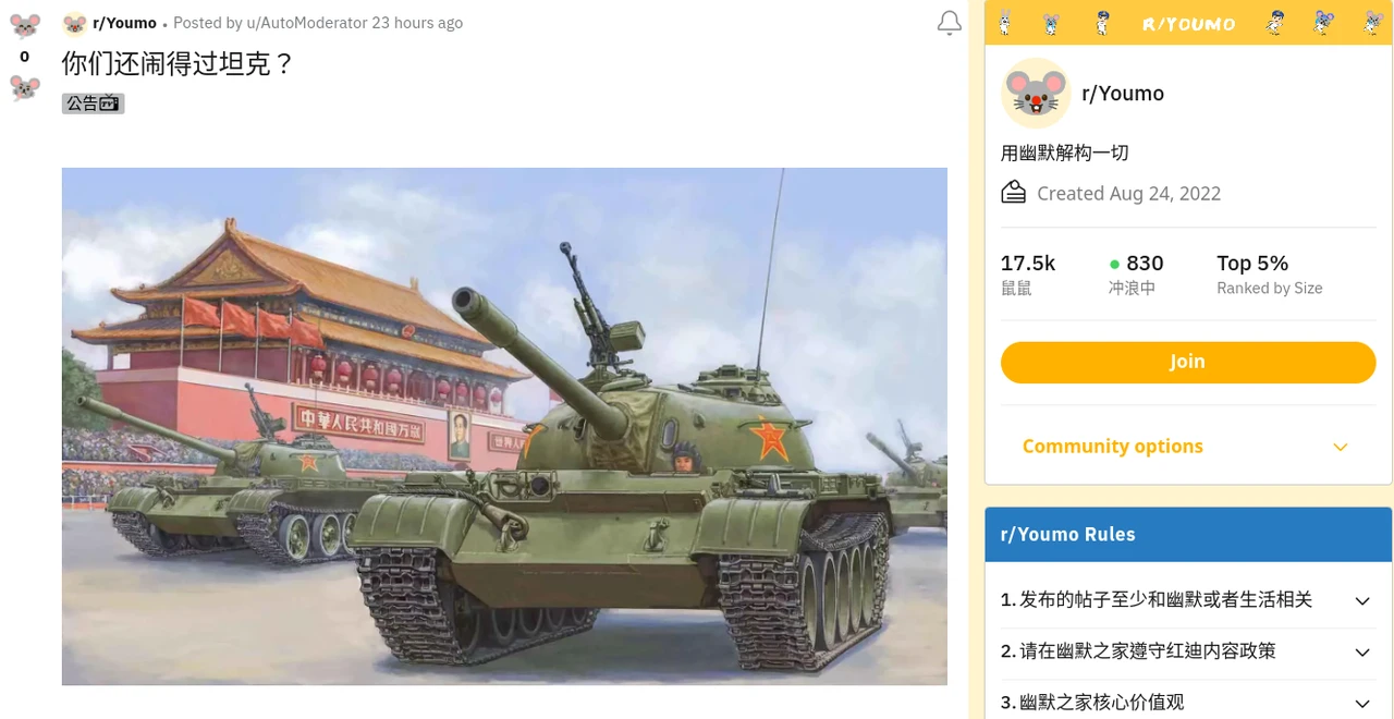 隨著2022年6月,r/CLTV爆破,進入所謂「後沖浪時代」,有的出逃到其他網站,有的留下來繼續抗爭,有人逃到r/TZTV,有人選擇湧入r/Youmo。