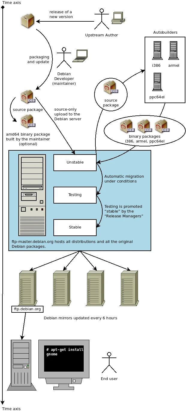 參考Debian Handbook這張冗長的Debian套件打包流程,就知道為什麼Debian這麼穩了。在主力電腦上,我寧願用Debian KDE也不要用Fedora KDE。