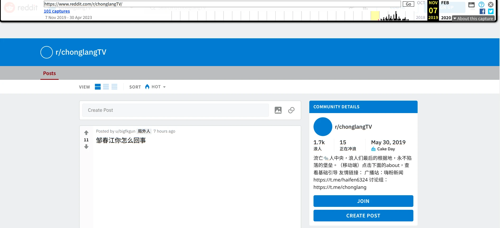 2019年建立的r/chonglangtv,竟能從牆外取暖的小sub變成萬人大沖浪的sub, 一度擠進Reddit前10大熱門sub。圖片來源