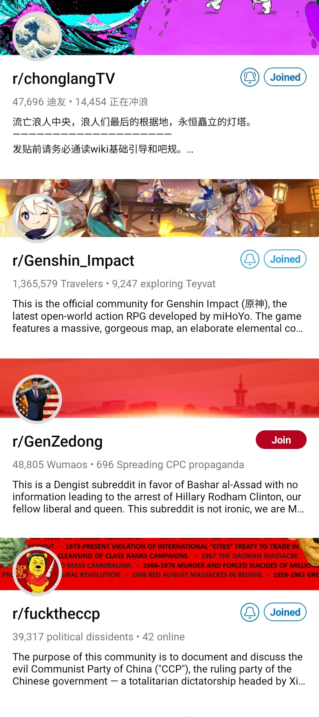 r/real_China_irl為首。神友強調的精神一言難盡,下述。