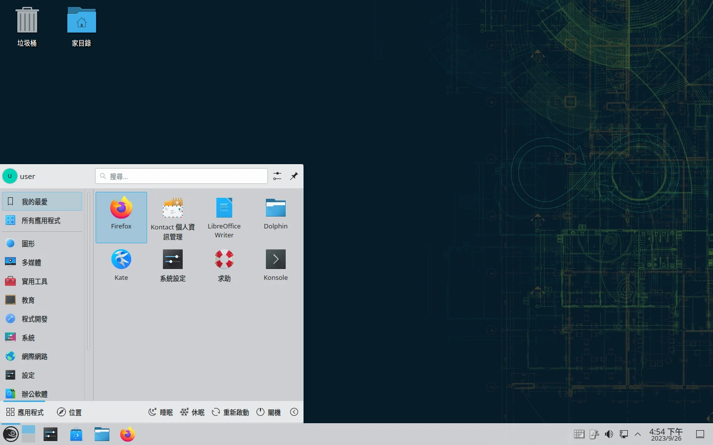 - 預設桌面環境:KDE Plasma(安裝器可選)