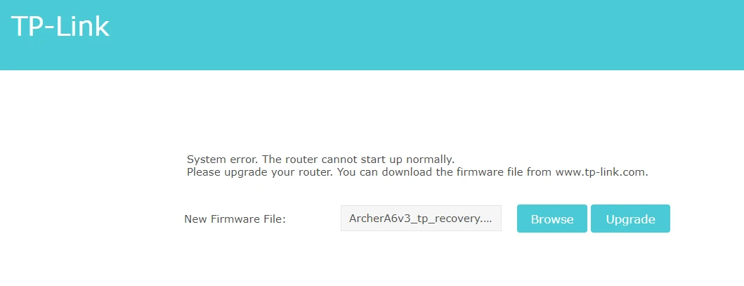 萬幸的是,在重開機後就進入TP-Link的Recovery了!上傳韌體後一切正常,以前設定的網路也回來了。
