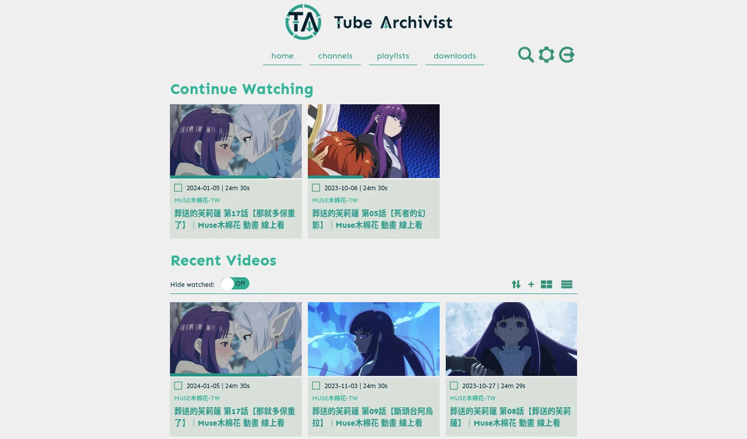 不論下載方式為何,Tube Archivist都會儲存影片的中繼資料,並將影片按照上傳者歸類,構成一個類似Youtube的界面。使用者可以瀏覽特定「頻道」已下載的所有影片。