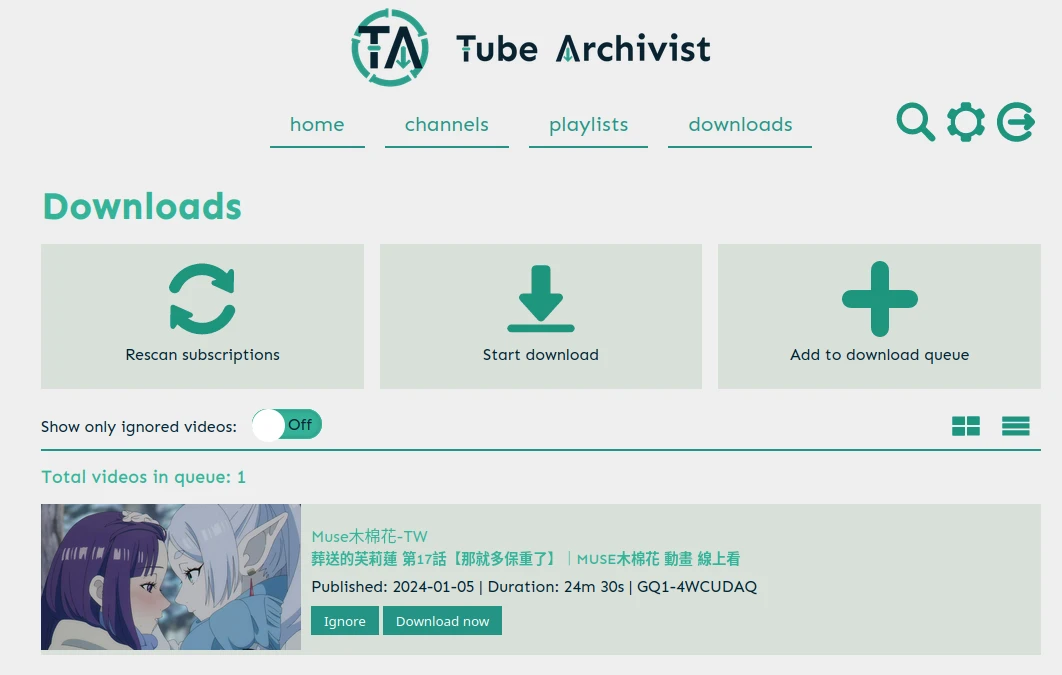 只要一按下按鈕影片就會出現在Tube Archivist佇列。