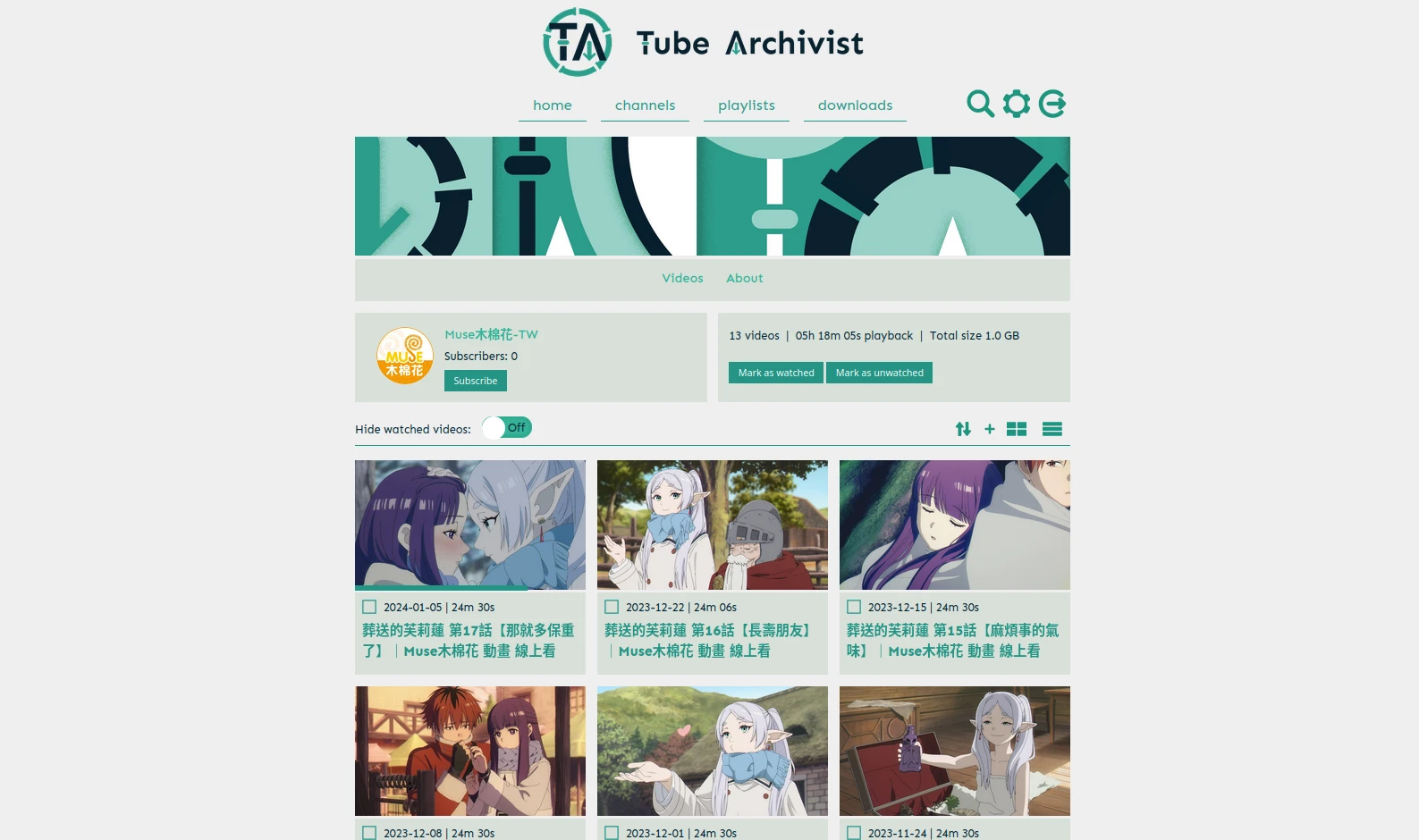 下載邏輯是這樣的:如果你直接訂閱(新增)頻道或者播放清單,則Tube Archivist會下載全部頻道內容的影片。