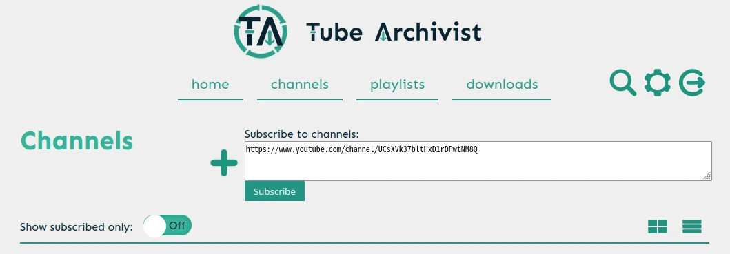Tube Archivist有頻道(Channel)、播放清單(Playlist)的頁面,輸入URL或者播放清單ID新增訂閱列表。