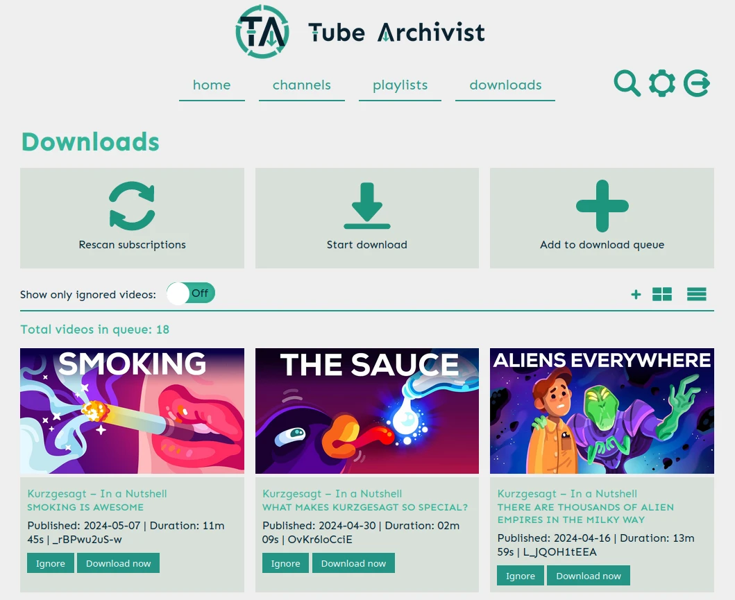 Tube Archivist是開源軟體,兼具下載Youtube影片與管理YouTube影片的功能,下載技術使用的是yt-dlp,支援高速下載4K畫質的影片和自動轉檔。