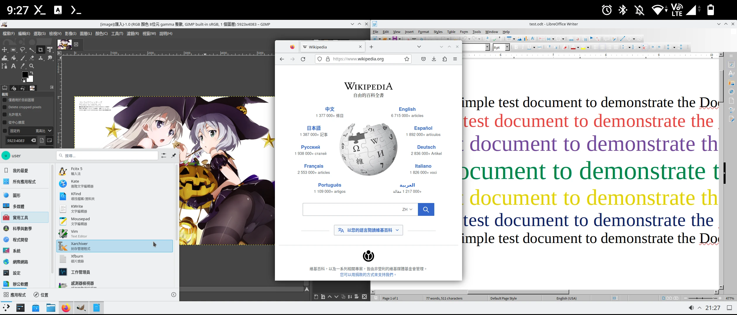 手機RAM在6GB以上的,跑個Termux + Debian容器的桌面環境不過份吧。操作就跟電腦一樣,常用電腦軟體都有ARM版本,除了支援LibreOffice外還可以跑Visual Studio Code呢,啊不過Chrome就得用Brave替代了。