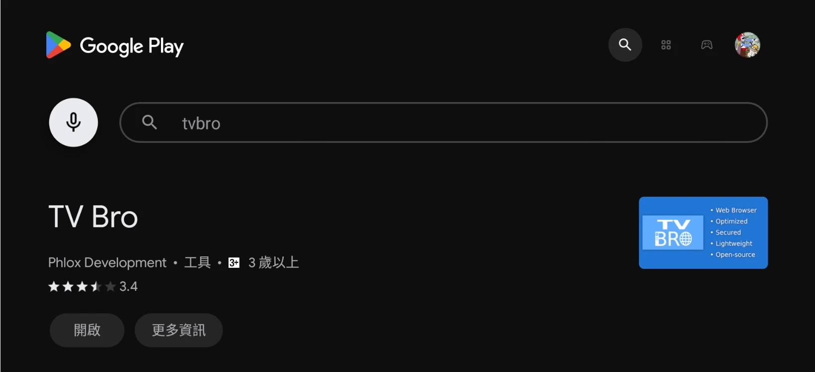 TV Bro這個APP可以在Android TV的Google Play下載,最低需求為Android 6.0系統。