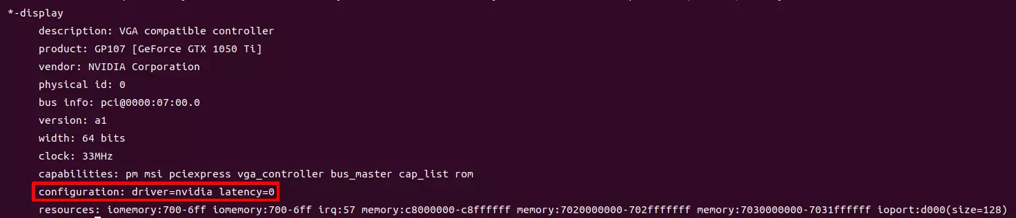sudo lshw -C display確認是否安裝成功,driver區段應會顯示"nvidia"