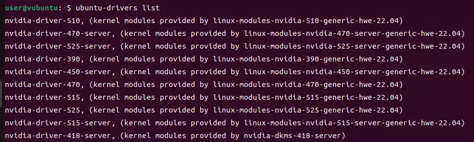順帶一提,你可以使用這個語法搜尋其他版本的Nvidia驅動:sudo apt search nvidia-driver-