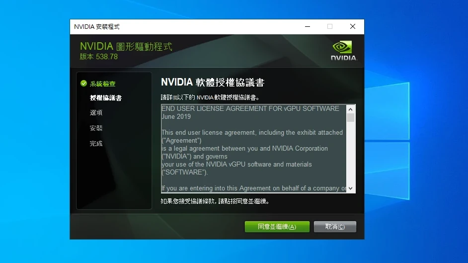 註:我取得的GRID驅動版本跟宿主機的vGPU驅動不太一樣,但還是可以裝。