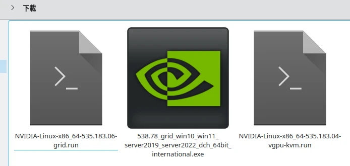 -vgpu-kvm.run和Linux虛擬機用的-grid.run。Windows虛擬機的驅動則是_grid_win10_win11.exe。