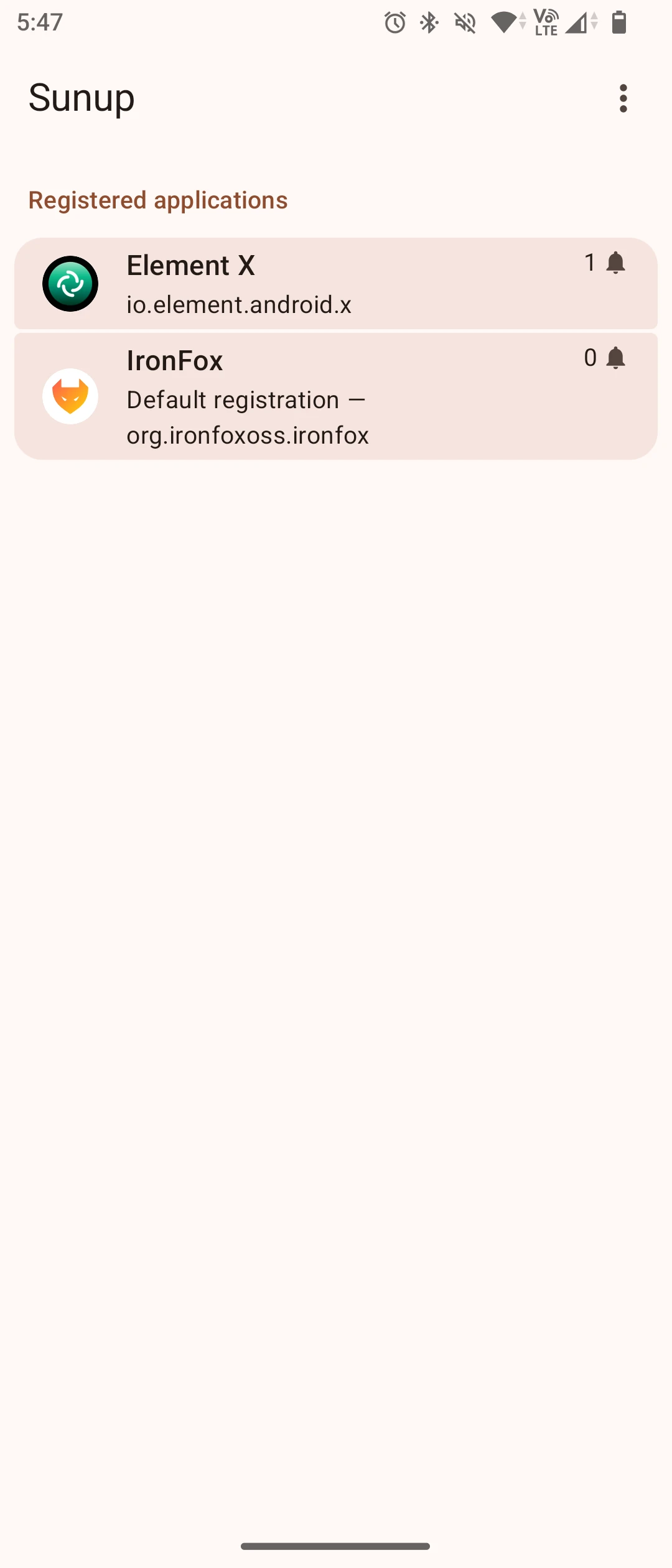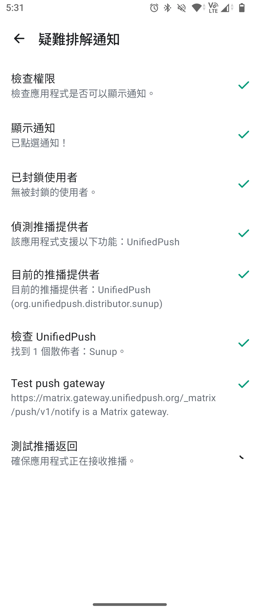 安裝好之後,Element X會自動偵測到Sunup的存在,使用這個服務推送通知。不過Sunup會有個通知一直常駐在通知欄,得將其長按關閉。