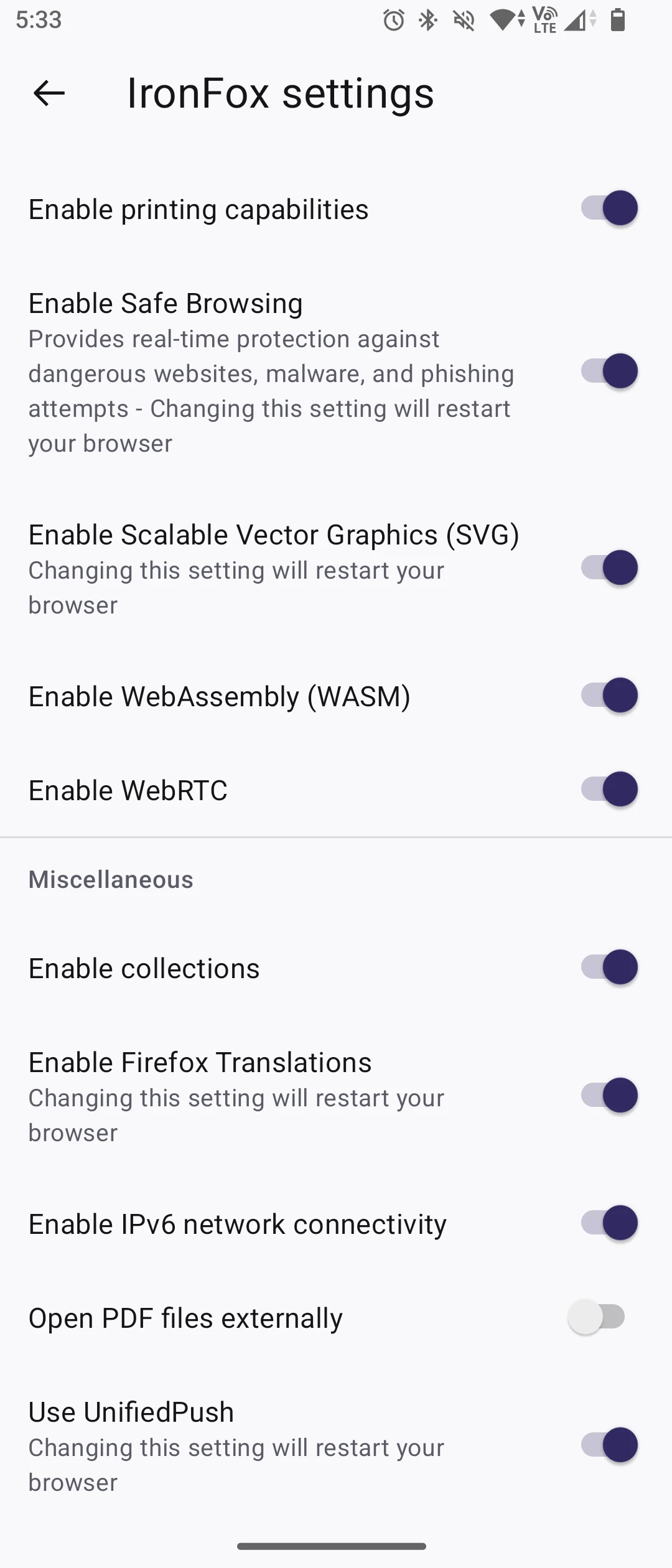 至於瀏覽器部份,官方版Firefox不支援UnifiedPush,需要使用Fennec或IronFox這類fork才行。使用者需要手動在設定裡面勾選使用UnitifedPush傳送通知。