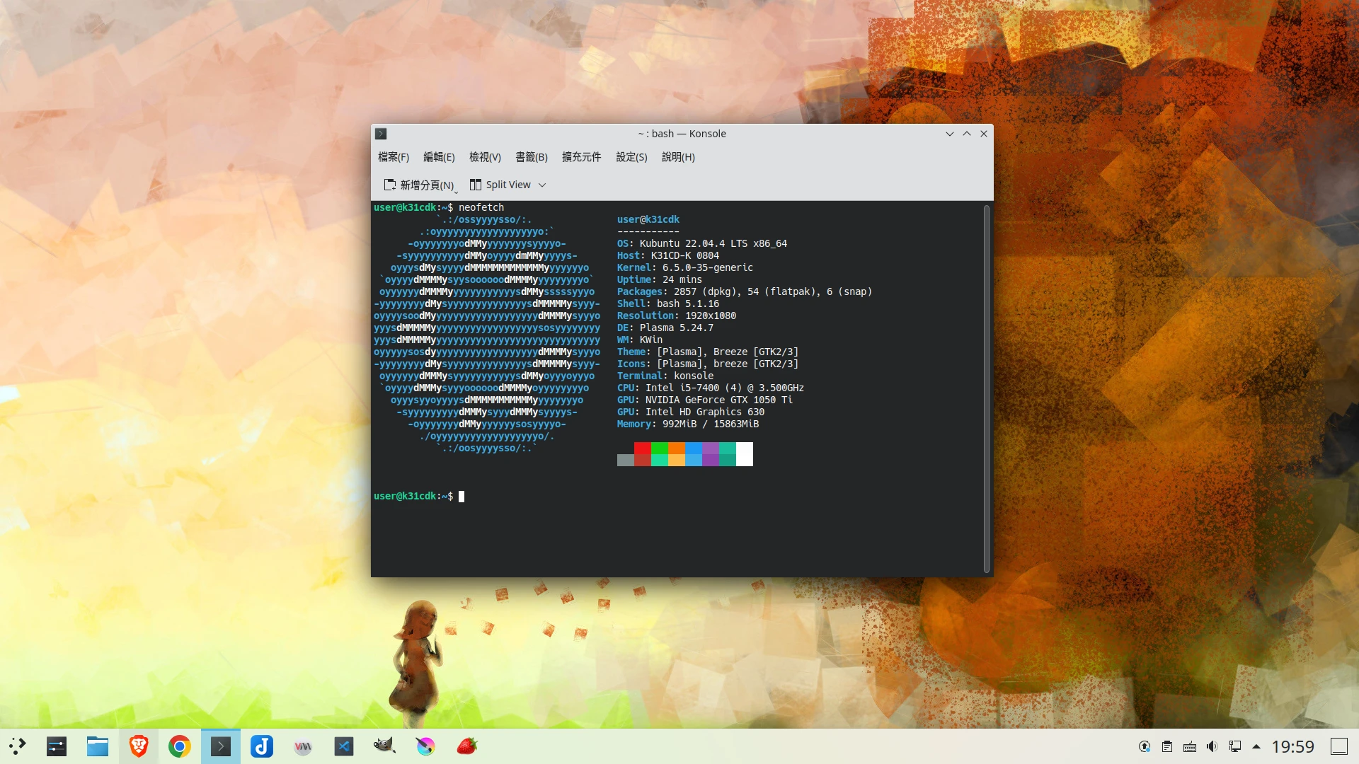 系統概況:KDE桌面,Intel CPU,顯示卡為Nvidia,裝有若干Flatpak、Snap套件,跑著Docker和KVM。