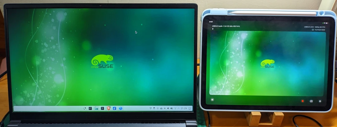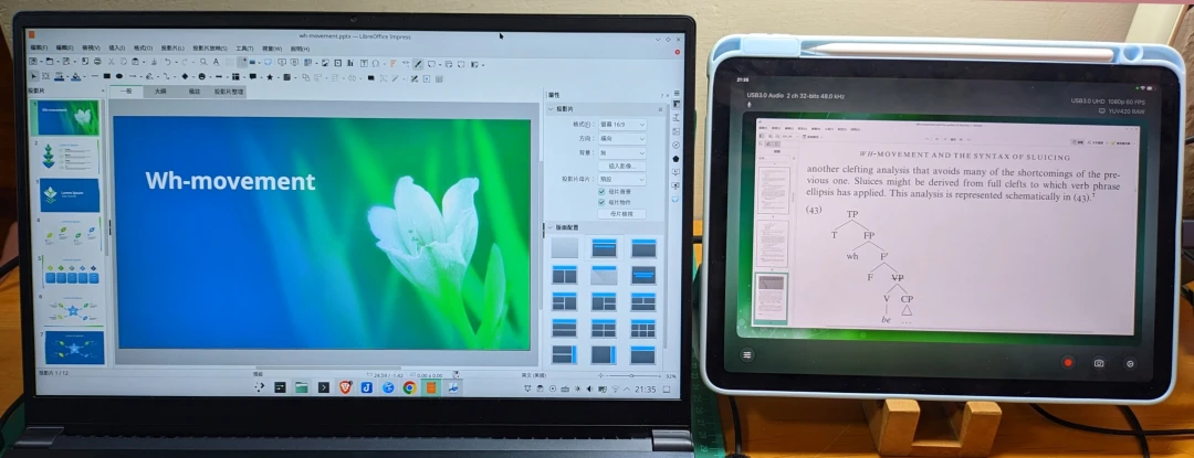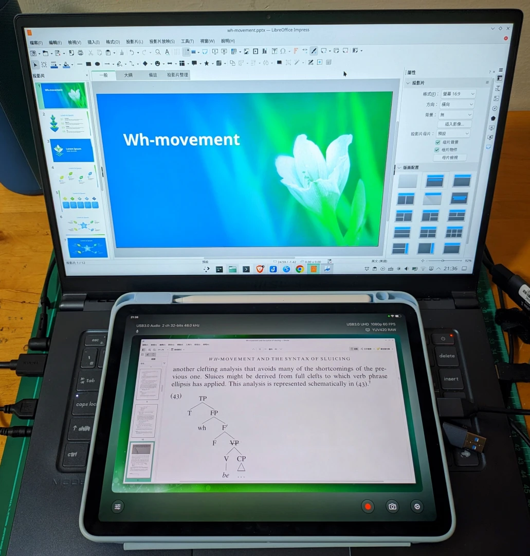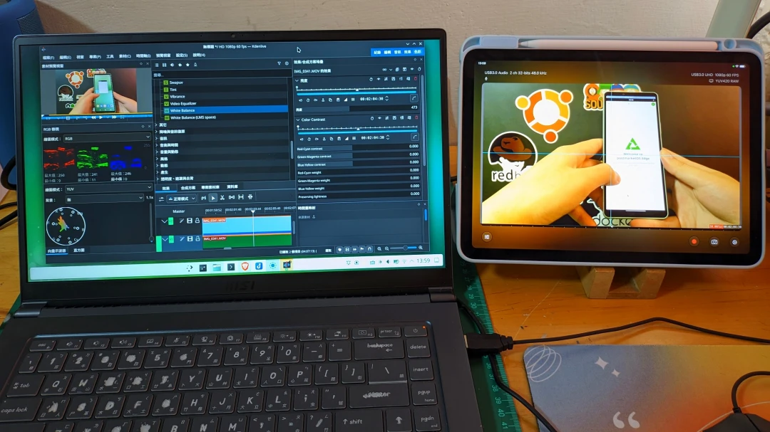 另一個例子:將顏色比較準確的iPad,透過USB擷取卡當作電腦的延伸螢幕使用,確保Kdenlive剪輯出來的影片顏色正確。