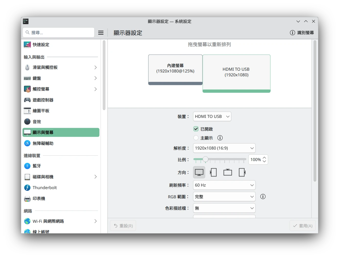這樣連上後,電腦端應該就會偵測到擷取卡的「螢幕」了。
