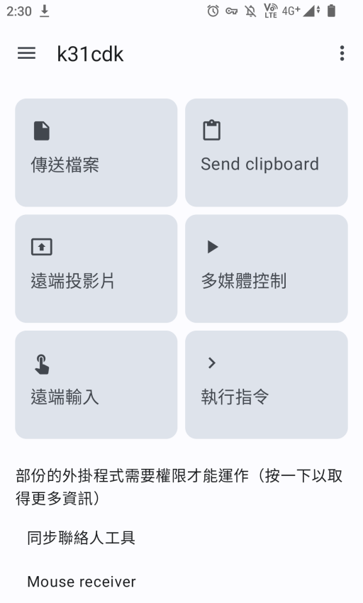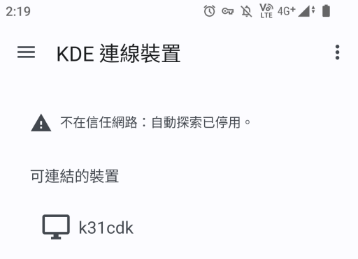 由於KDE Connect APP預設會一直掛在Android背景,日後只要開啓手機上的VPN,KDE Connect就會自動與電腦連線。