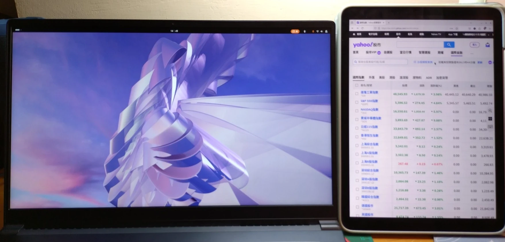 例圖,透過RDP將iPad作為GNOME桌面的副螢幕,看股市。
