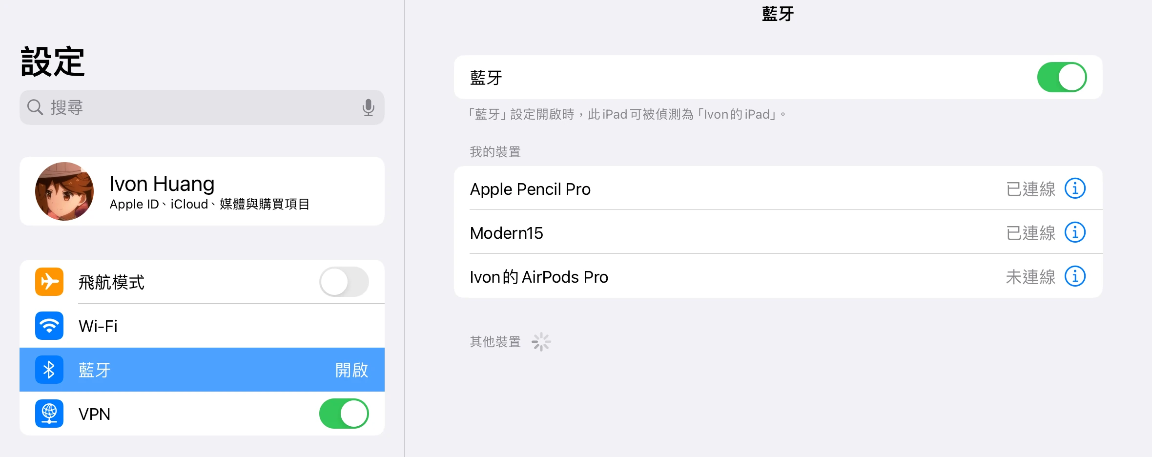 2. 將藍芽鍵盤與iPad配對#