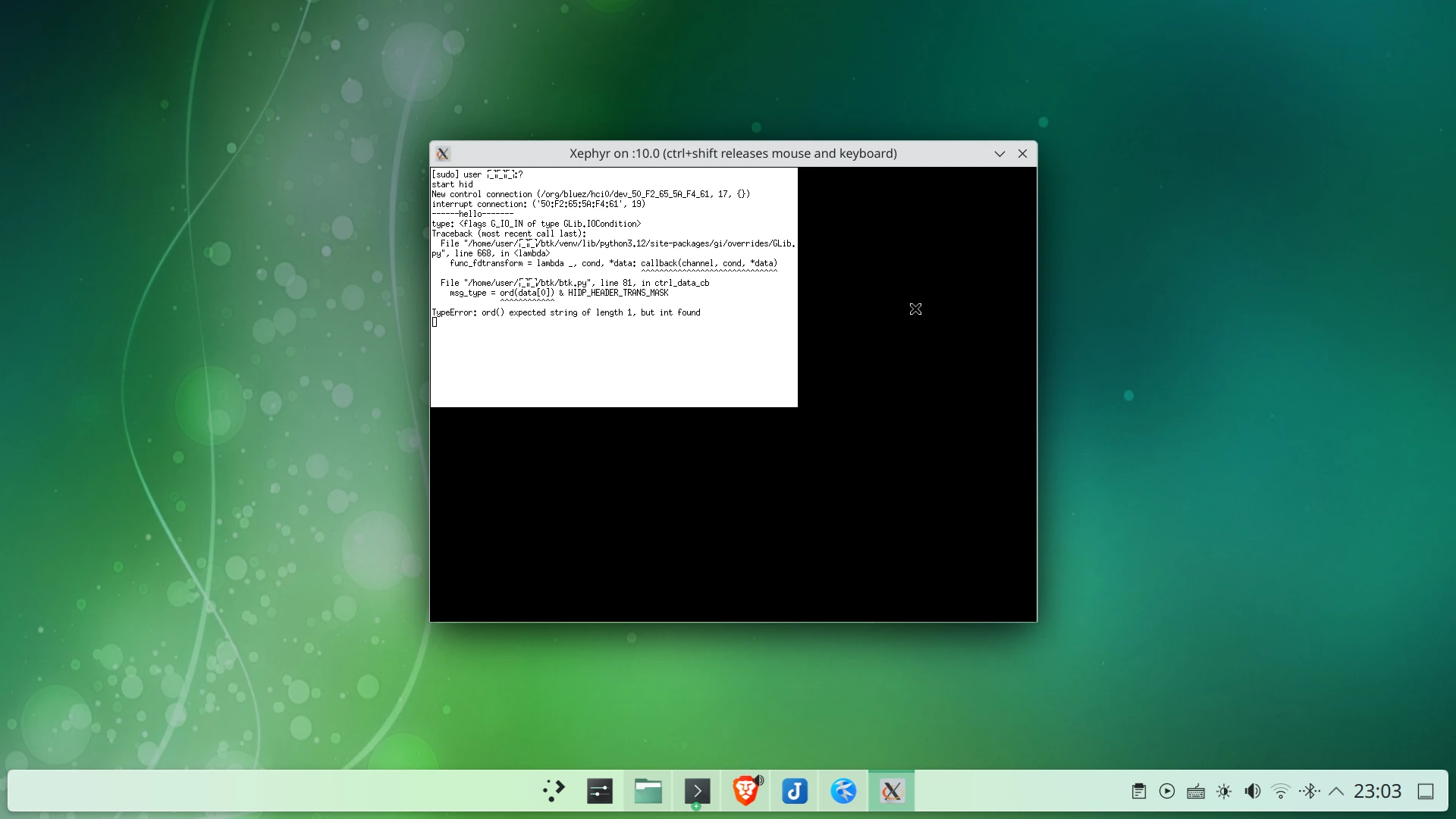 我希望操控iPad不會影響操作Linux電腦,所以我的解法就是跑一個巢狀X伺服器,把BTK「關在裡面」執行。