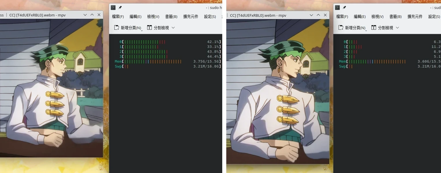 我發現在雙GPU的系統上,MPV在無法使用VA-API的時候,似乎會自動fallback,尋找是否有其他GPU,改用VDPAU來做硬體加速。