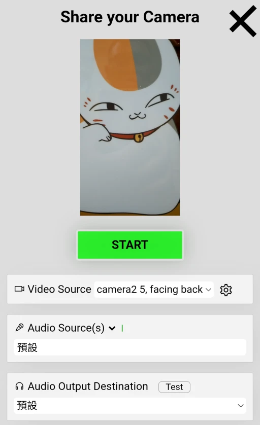 在Android或iPhone,開啟VDO Ninja網頁,選取Add your camera to OBS,網頁應該會自動偵測你的相機和麥克風