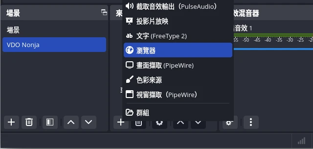 將螢幕上顯示的綠色網址複製,開啟OBS Studio,點選新增瀏覽器