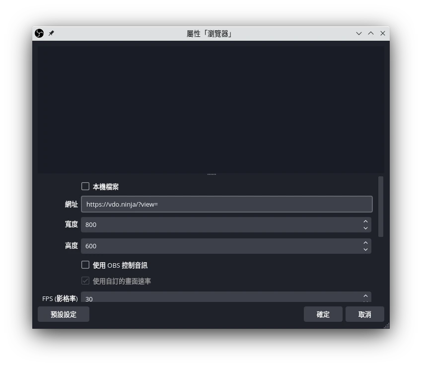 接著參考上面分享手機鏡頭的作法,在OBS Studio加入瀏覽器來源,分享的畫面就會跑到OBS Studio上面了。