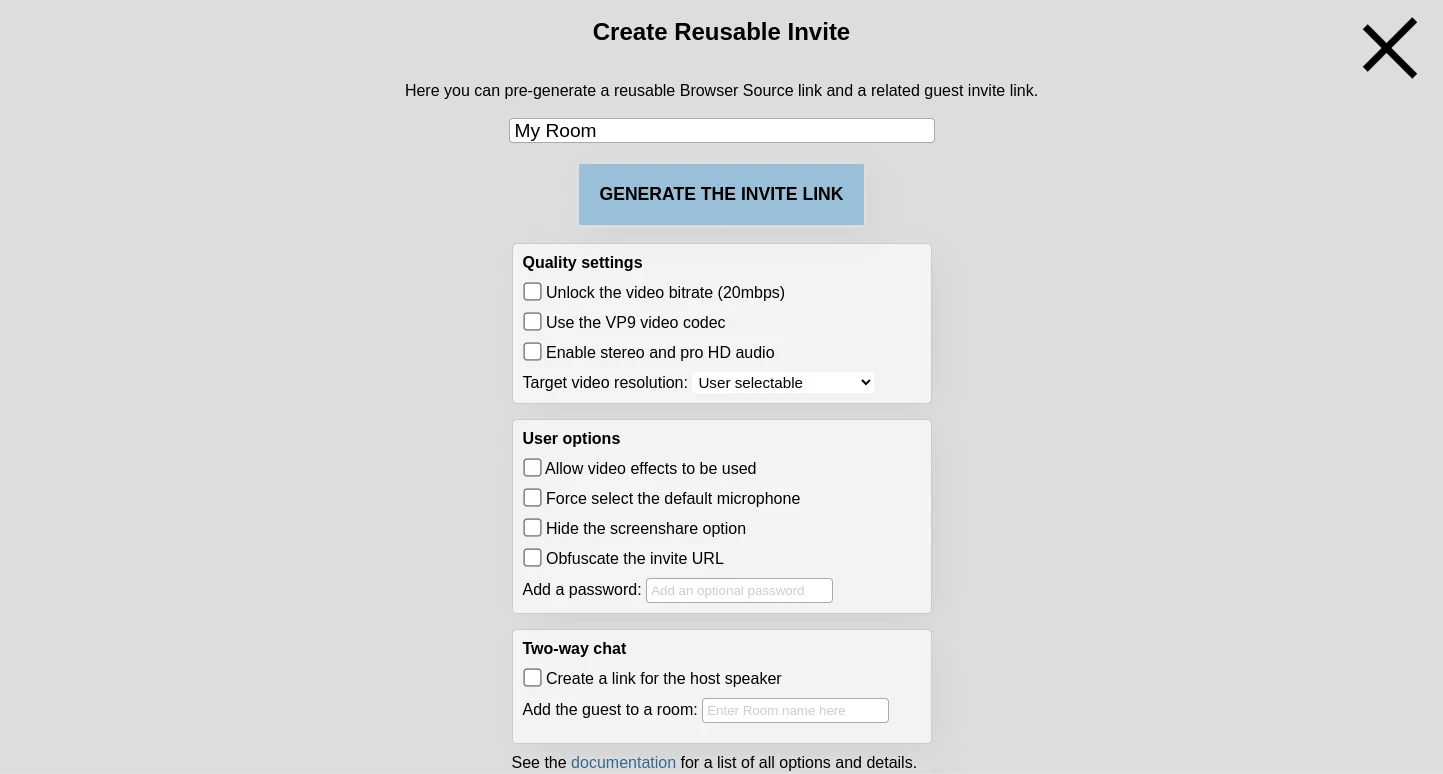點選Create Reusable Invite,取名和設定密碼就行,日後該網址可重複使用,進行分享鏡頭。