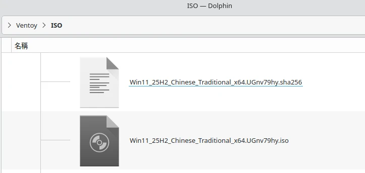 (選擇性)有的隨身碟用久了檔案可能會自己毀損。如果你想確認ISO檔案有無毀損,可以在.iso檔的同一個資料夾下,放置含有雜湊值的同名檔案,如.md5或.sha256或.sha512結尾的。這樣Ventoy開機啟動的時候就會自動依照內容,校驗ISO完整性。