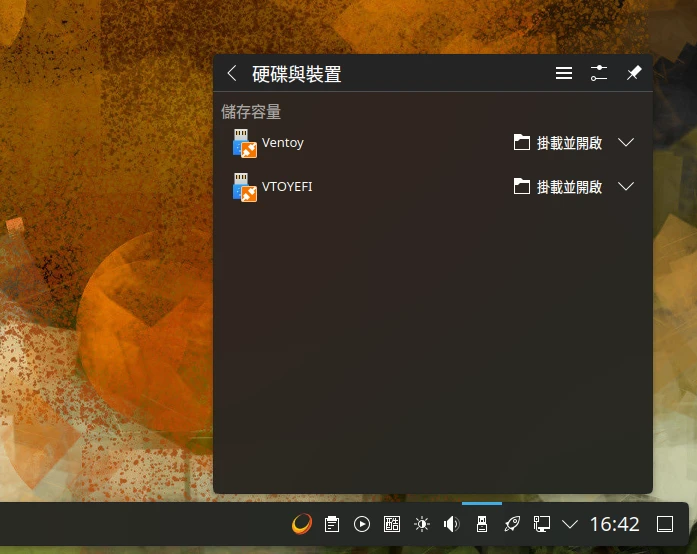 (選擇性步驟)有時候你可能會想把LiveUSB的檔案儲存到隨身碟,但如果用Ventoy跑LiveUSB進入系統,會發現無法掛載Ventoy的分區,像Linux會出現