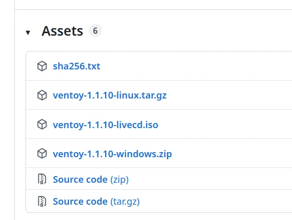 至Ventoy的Github,視作業系統下載。例如Linux的要下載